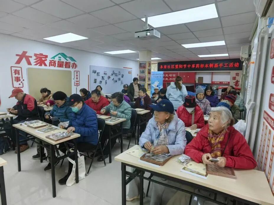 10月29日下午,阜南社区组织开展中草药标本制画手作活动,吸引30多位居民参与。活动以中草药知识普及为核心,将健康养生与文化体验融合,通过讲解常见药材的功效、指导标本画制作,让老人在趣味体验中学习健康常识,推动健康理念融入日常生活。
